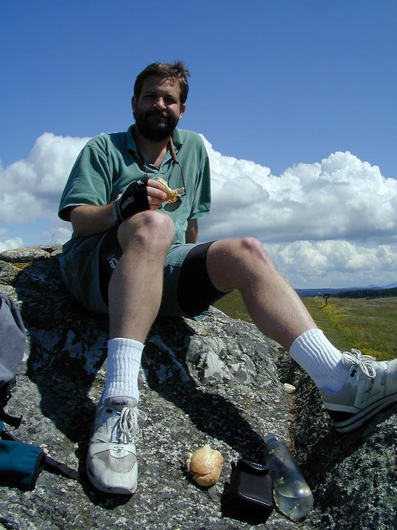 Eric having lunch on a big boulder at American Camp.