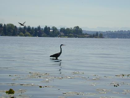 Here's another heron, this time with Mt. Rainier in the background.There's some really beautiful waterfront houses around this area, called the Laurelhurst area.