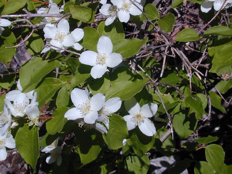 This shrub was very common--it's called the Mock-orange.  You could tell that it was around before seeing it because it had a very strong sweet scent.