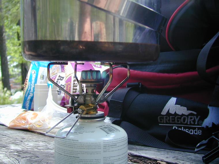 Dinner was Ramen noodles with cheese, cooked on a super light-weight stove that fits in a container that was about 4" by 1.5" by 1.5".