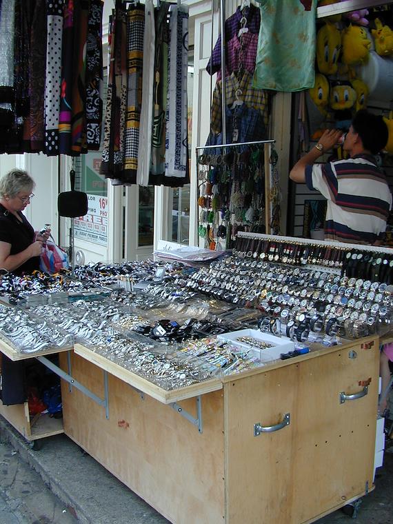 There were dozens of outside vendors selling fake you-name-it. The most popular counterfeit was watches (Rolex for $30?)