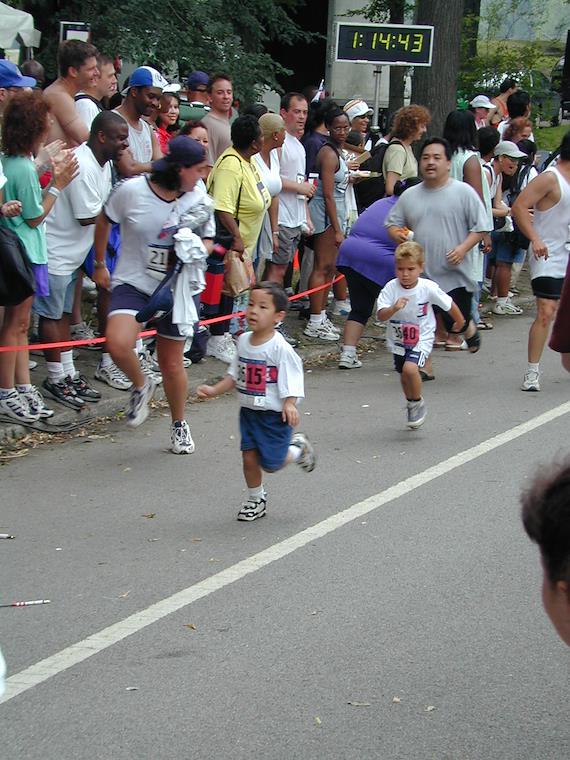 We rented some bikes and toured the park that way. There was a footrace going on in the park, the Tommy Hilfinger 4 mile race. By the time we got there, the adult portion was over, but we were just in time for the 3 to 4 year old races.