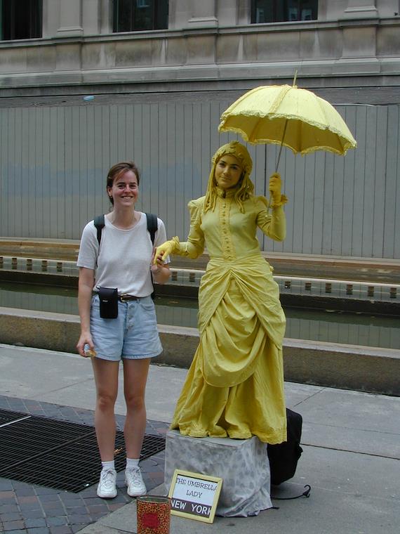 This lady was doing the "silent sculpture" act for money right outside of the Metropolitan Museum of Art. When I put a dollar in the bucket she stretched out her hand to me and smiled. It was a little embarrassing.