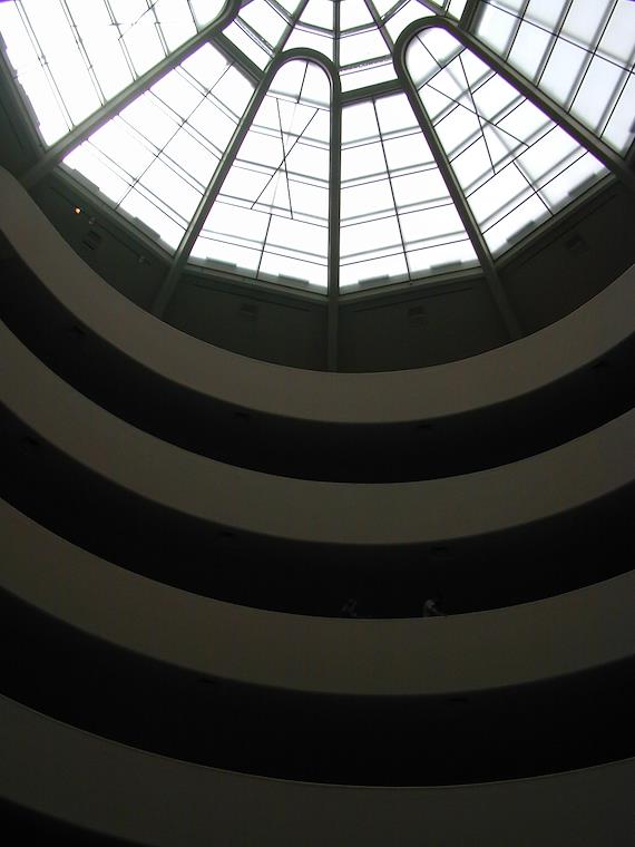 The Guggenheim Museum is famous for it's architecture. You see the paintings as you walk down a spiral, inside the building.