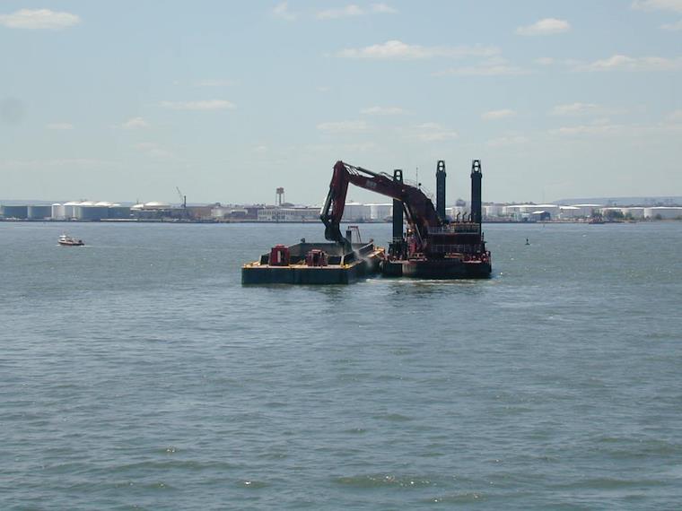 This barge had a huge digging shovel on it, and was dredging the canal.