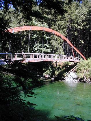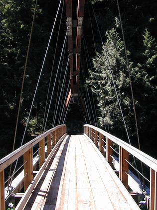 | The trail was pretty flat, so there weren't any great views, but there was the Snoqualmie River. Right at the beginning of the trailhead, there was a beautiful wooden footbridge. | |