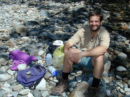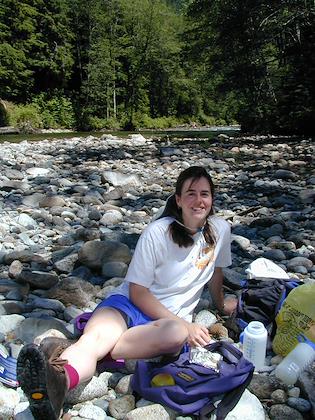 |  | |  | | Here we are having a snack on the riverbank. Nobody else was around to take our picture together, so we took each other's picture. | |