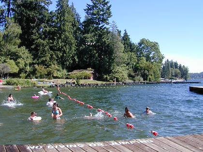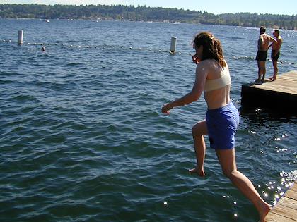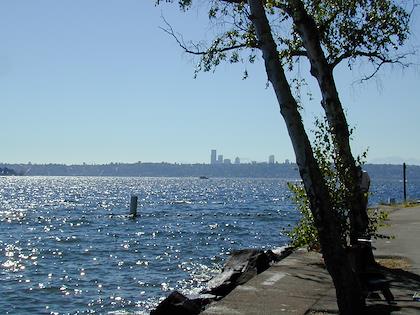 |  | |  | | On the way home I went swimming at Chism Beach Park on Lake Washington while Eric took pictures. The water was great! There's a superb view of Seattle from the park. | |