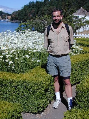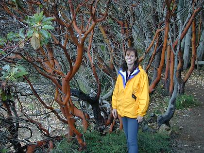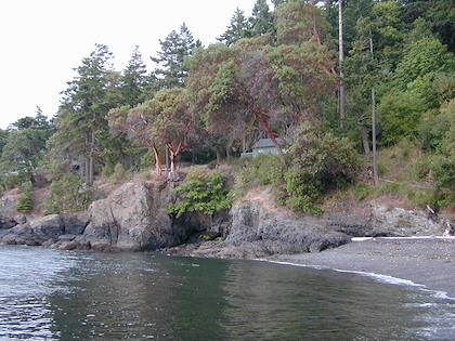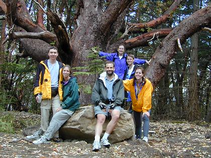 | You can see Vancouver Island, Canada in the background here. | | This is at Limekiln State Park, on the west side of San Juan Island. We asked a guy to take a group picture of us in front of this Madrona tree, but when we looked at the camera, it turned out that it didn't take. So we did one with the self timer. |