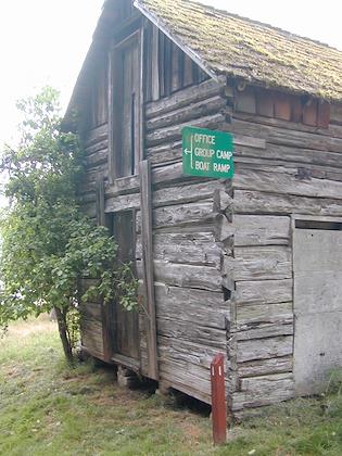 | | Next we biked to San Juan County Park. It used to be an old farm--below is one of the barns, now used as a signpost.. |