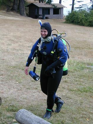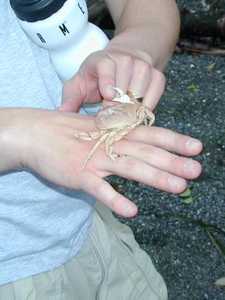 | Eric found a crab, and was playing with it. (okay, okay, it was a dead crab--it's a posed picture) | | This park, like Limekiln, is big with scuba divers. |