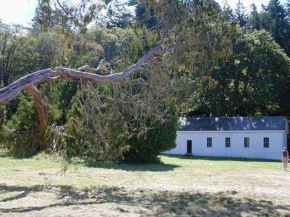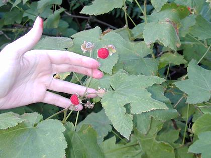 | The next morning dawned a lot brighter. | | On the way to English Camp National Historical Park, we found a big patch of thimbleberries. Thimbleberries are very similar to raspberries, but sweeter, with almost a nutty taste. They're very delicate, too, and are usually crushed in the process of being picked. This is probably why they're not commercially grown. |