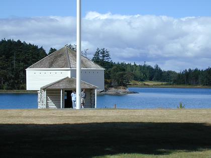 | The view looking north of San Juan County Park. | | This was a funny little structure right off the road on the way back to the campground (Lakedale). I believe it's a bus shelter for kids to stand in. |
