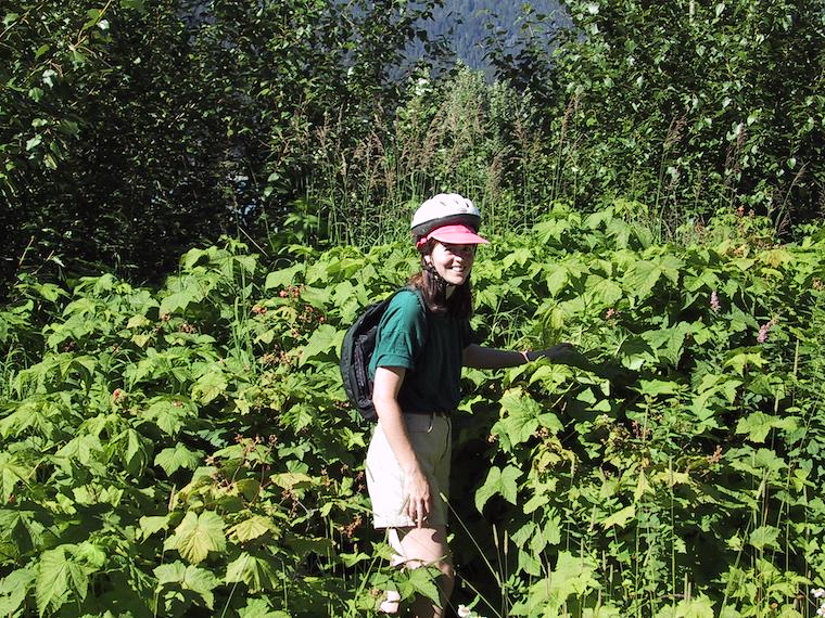 Saturday afternoon Gary and Grace, and Eric and I rented bikes and took a ride around Whistler. I'm happy in this picture because I found a patch of ripe and juicy thimbleberries.
