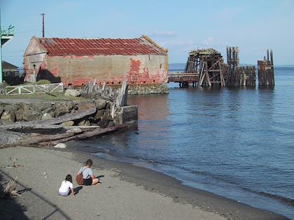 This is the lighthouse at Fort Worden, an old military base. Apparently this is where part of An Officer and a Gentleman was filmed. Below is the lighthouse. The roof of the lighthouse-keepers house, right next door, is all white with seagull droppings.