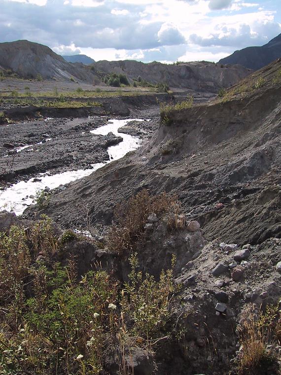 You can really see the erosion here.  Not only were the hummocks eroding away very rapidly, but there was also 60 to 100 ft of ash and mud deposited in this valley, which is eroding at an enormous rate.