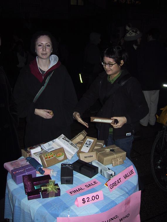 In the evening we took a walk around Robson Street, and ran into a group of people demonstrating against consumerism. Apparently they're trying to make the day after Thanksgiving, the biggest shopping day of the year, into "Buy Nothing" day.