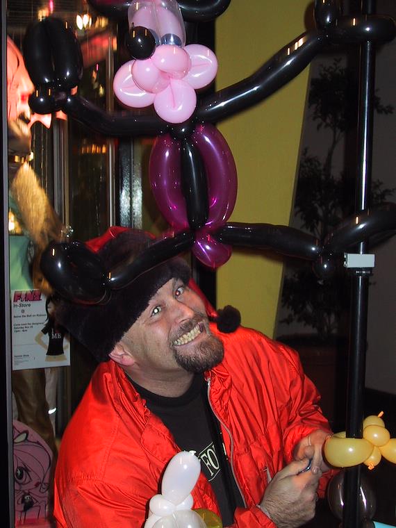 Here's the balloon sculptor, underneath Mickey Mouse.