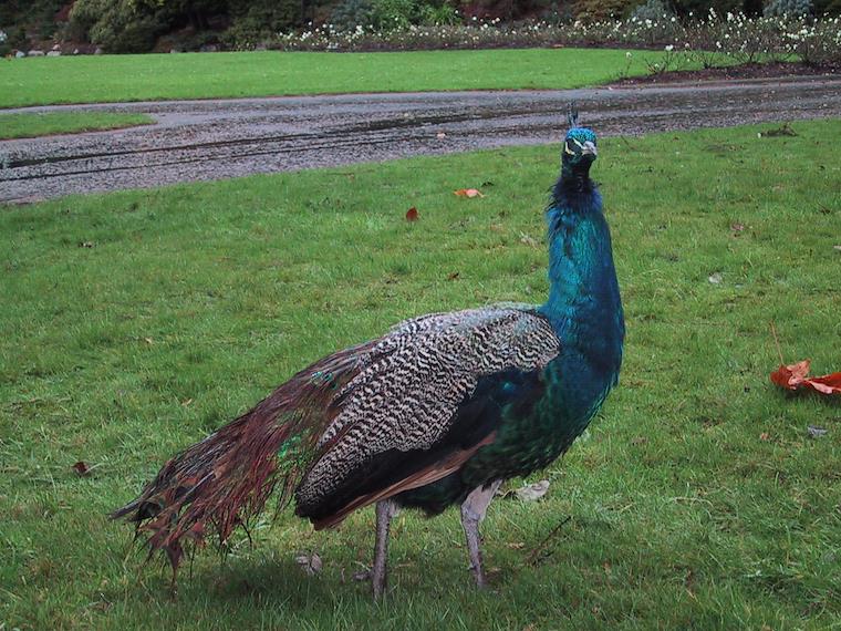 There were peacocks wandering around Stanley Park. This one wasn't shy at all.