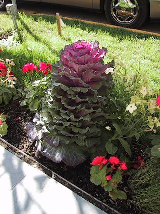 |  | |  | | | We went to the Anchorage museum first. Just outside there were some ornamental cabbages, ones that normally grow about half the size of this one. All that sunshine in the summer really makes them huge! |