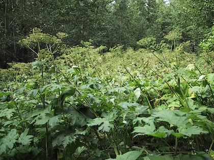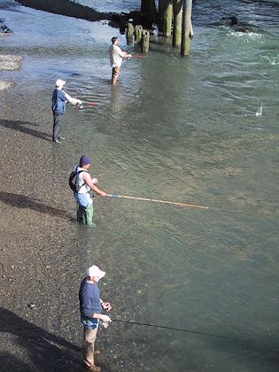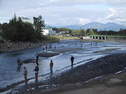 |  | |  | | This was the biggest field of cow parsnip I've ever seen. | | Later we drove to Ship Creek, right in the middle of downtown. It's a big salmon creek, not because there's necessarily a huge amount of salmon in it, but it's so convenient that lots of people fish there. |