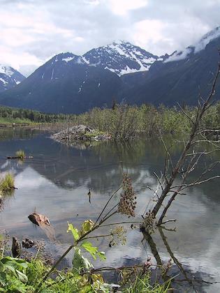 |  | |  | | The Chugach State Park is one of the largest state parks in the country. We went to the Eagle River Visitor Center north of Anchorage, and took some walks from that area. Great views of the Chugach mountains from there. One huge pond had been created by a beaver dam | |