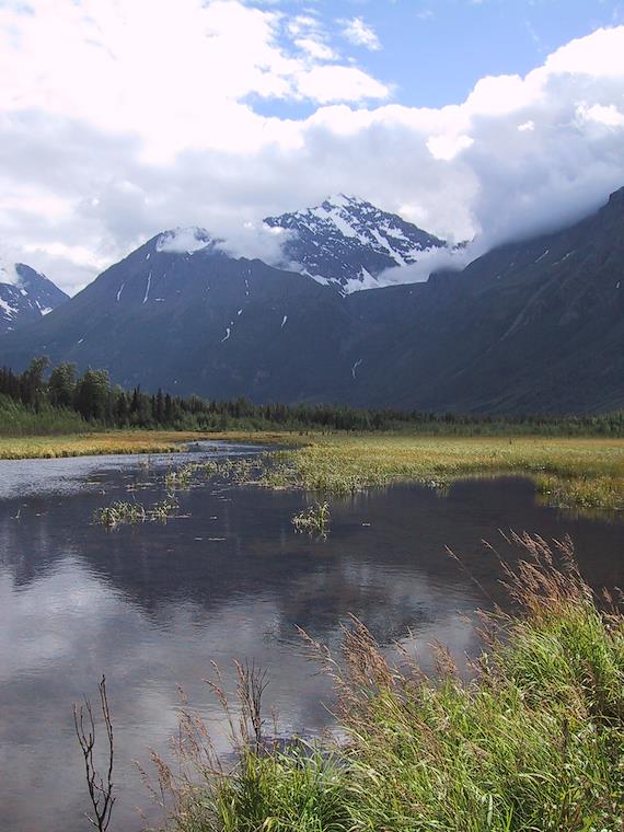 The Chugach State Park is one of the largest state parks in the country. We went to the Eagle River Visitor Center north of Anchorage, and took some walks from that area. Great views of the Chugach mountains from there. One huge pond had been created by a beaver dam