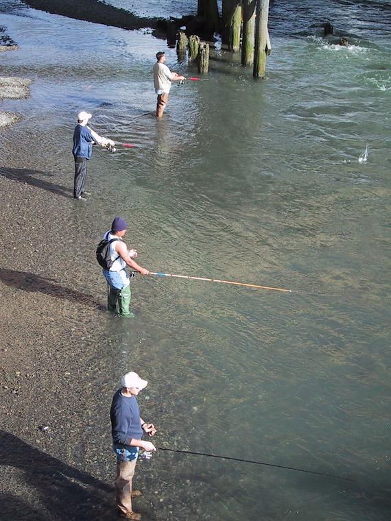 Later we drove to Ship Creek, right in the middle of downtown. It's a big salmon creek, not because there's necessarily a huge amount of salmon in it, but it's so convenient that lots of people fish there.