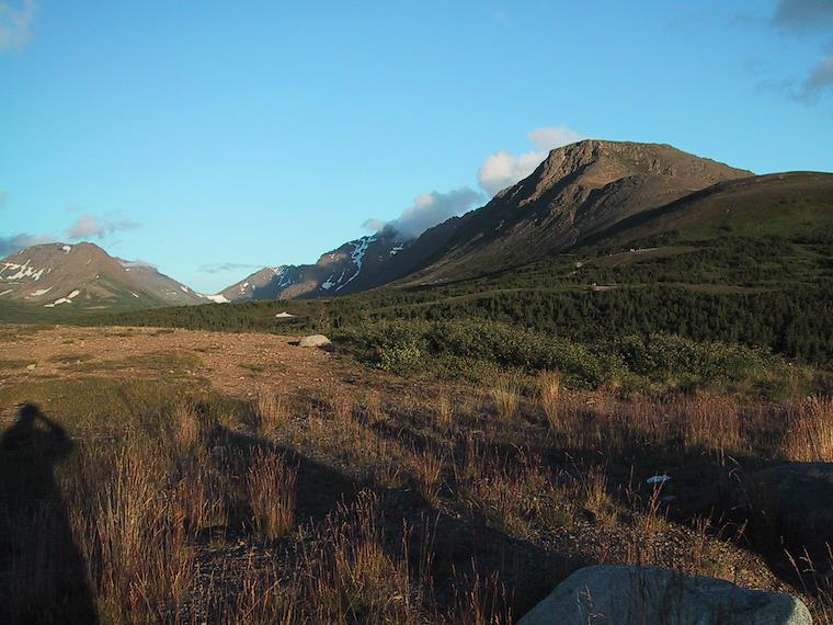 Late in the evening, we drove up to another location in Chugach State Park were you get a great view of Anchorage. The view in the other direction was better, though, kind of like a moonscape.