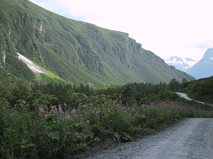 | We drove around the backroads of Valdez some, where the old town of Valdez used to be (before the earthquake of 1964). There were more salmon streams there. | |