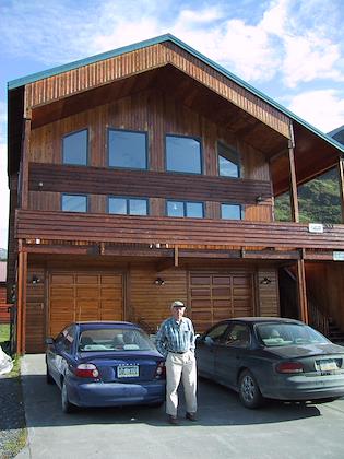 On the 11th, we drove from Valdez to Anchorage. This is the bed and breakfast we'd been staying at in Valdez, called L & L's Bed and Breakfast. The blue car is our rental car, a Kia.