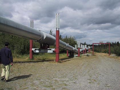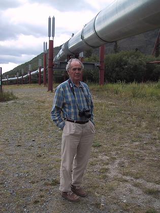 This is one of the many places you can see the pipeline. It's interesting to see how they made it relatively earthquake proof--the pipeline can slide around on the platform, and has flexible fittings.