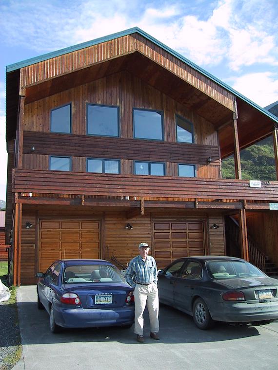 On the 11th, we drove from Valdez to Anchorage. This is the bed and breakfast we'd been staying at in Valdez, called L & L's Bed and Breakfast. The blue car is our rental car, a Kia.