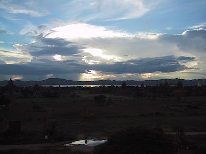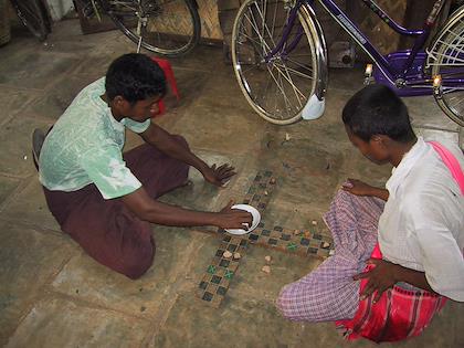 |  | |  | | Gambling at a temple. They throw shells in the bowl, and then win or loose depending on how many of the shells land on one side or another. | | Sunset from another temple |