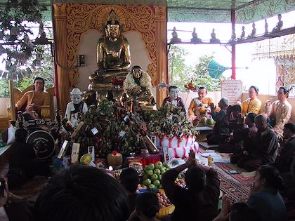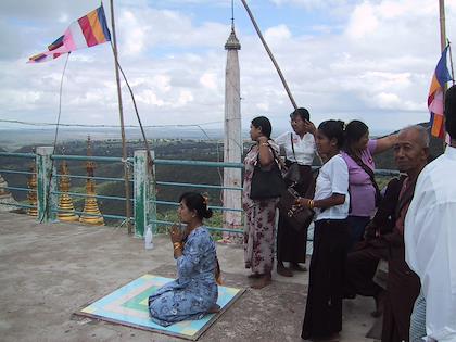|  | |  | | This spirit is an alcoholic--notice all the bottles left as offerings. | | Praying at the top of Mt. Popa. |
