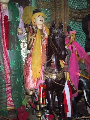 |  | |  | | Mt. Popa. There's a staircase to the top, where the temples are, that takes about half an hour to climb up. | | Some of the 37 nats that are worshipped. They each died a violent death. My guide's father told him, "Why should we worship nats, if they're not even powerful enough to protect themselves from a violent death?" |