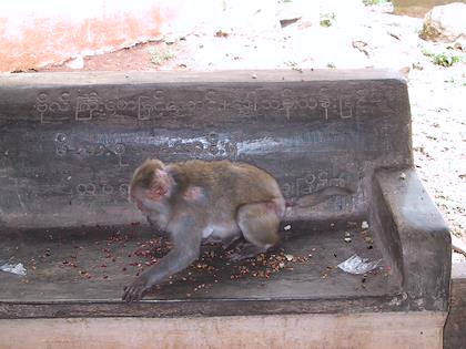 |  | |  | | There's a well-fed and bold troop of monkeys at Mt. Popa that wait for handouts from tourists. | | My room in Bagan. |