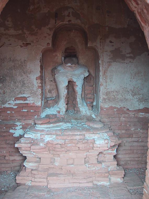 Often jewels are hidden in Buddha statues. Somebody tried to dig these out.