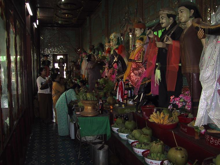 Some of the 37 nats that are worshipped. They each died a violent death. My guide's father told him, "Why should we worship nats, if they're not even powerful enough to protect themselves from a violent death?"
