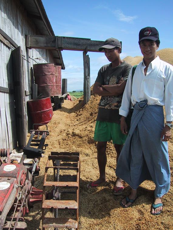 Tutu at a rice mill. He's standing on a pile of rice hulls, and next to him is a tractor that's used in the rice fields. I don't think it was working, though.
