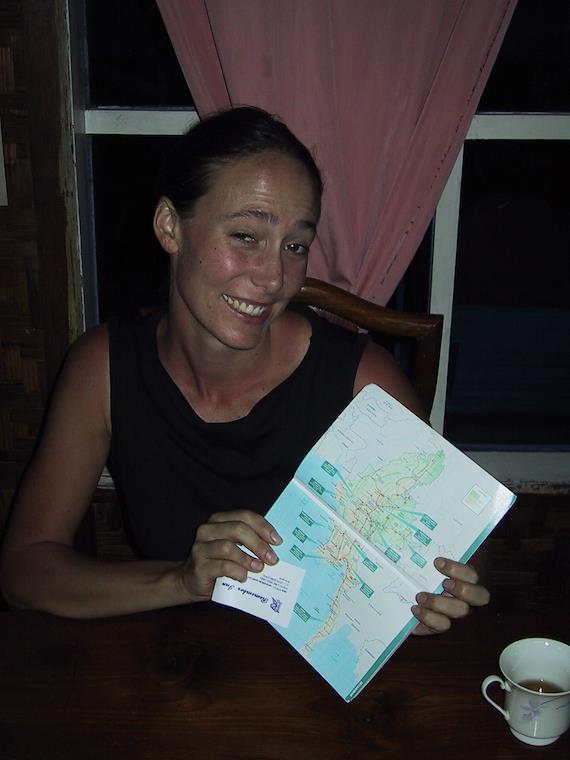 I met Stephie in Bangkok, and we ended up traveling together a little. Here she is with the "bible" (the Lonely Planet guidebook to Burma).