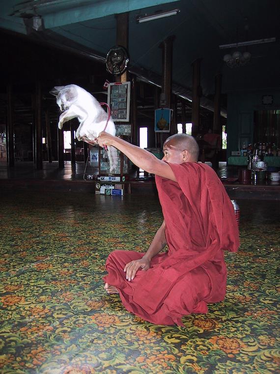 The monks at this temple on Inle Lake got bored, and trained cats to jump through hoops.