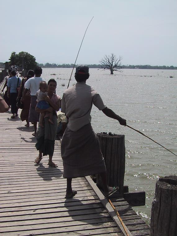 This is a very old teak bridge near Amarapura. No bikes were allowed to be ridden across it, in order to preserve it.