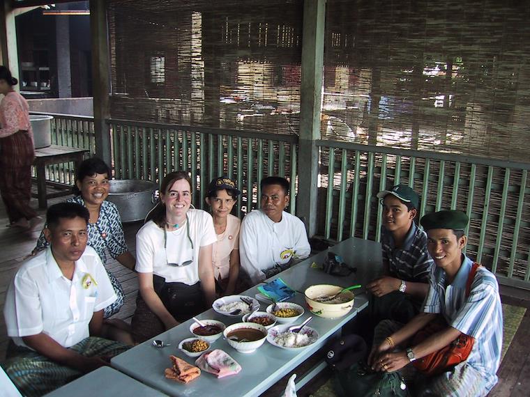 Many pilgrims travel throughout Burma in groups on buses (if they have a little money) or trucks (if they have less), visiting the more famous monasteries. At this monastery close to Amarapura, some pilgrims invited me to lunch. The pilgrims sleep and eat at an area set aside for pigrims at the monastery during their stay, and cook their own food.