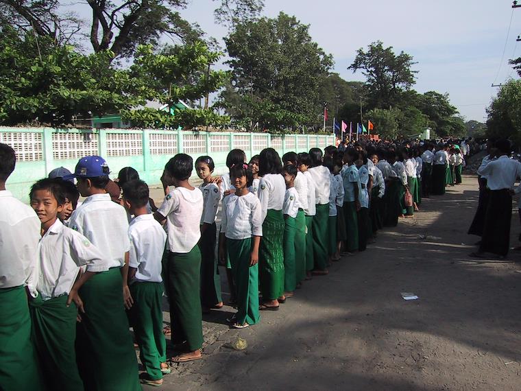 While we were waiting for a ferry, Tutu and I came across an opening ceremony for a building. Lots of soldiers and schoolchildren. Apparently opening ceremonies are a big deal for the government, and they get schools to send over children to attend and provide a crowd. Right after this photo I was told to stop taking pictures, but later I was able to get in close and watch the actual ceremony.