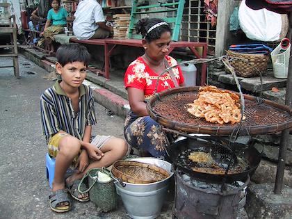 Yangoon Capital city, full of colonial archicture and the huge Shwedagon Pagoda. Lots of pictures of street vendors.