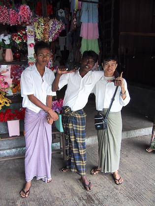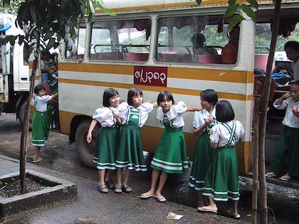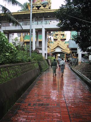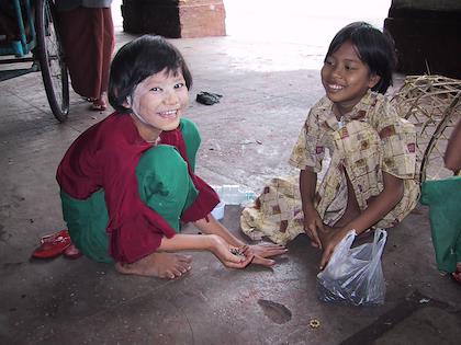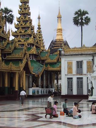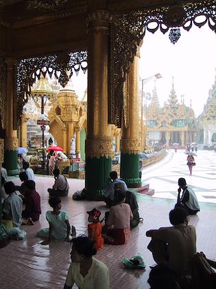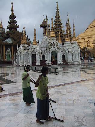 | These girls work at the temple, earning about 200 kyat, or $.50, a day. | | People come from all over Burma to worship at Shwedagon. |