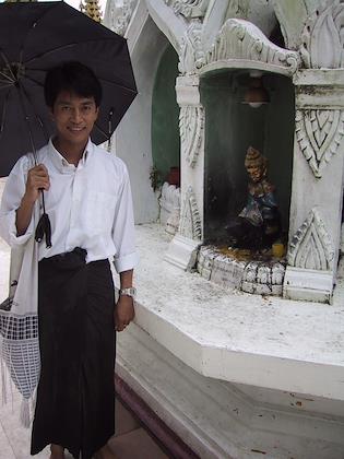 | I hired Tutu as my guide in Shewedagon. He ended up being my guide throughout most of Burma. | | The actual stupa, centerpiece of Shwedagon. Too bad it wasn't sunny! |