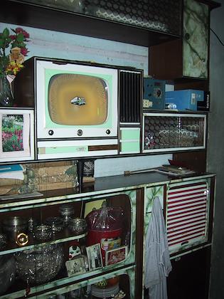 | Tutu's friend's father, listening to the Voice of America on the radio in Burmese. | | A fake TV. Apparently these were common, and were put in for decoration. The family also had a real TV, though. |