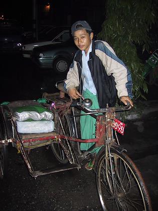 | Tutu's friend and I. I'm headed back to the hotel, in a trishaw. | | A closeup of the trishaw and driver at the hotel. |
